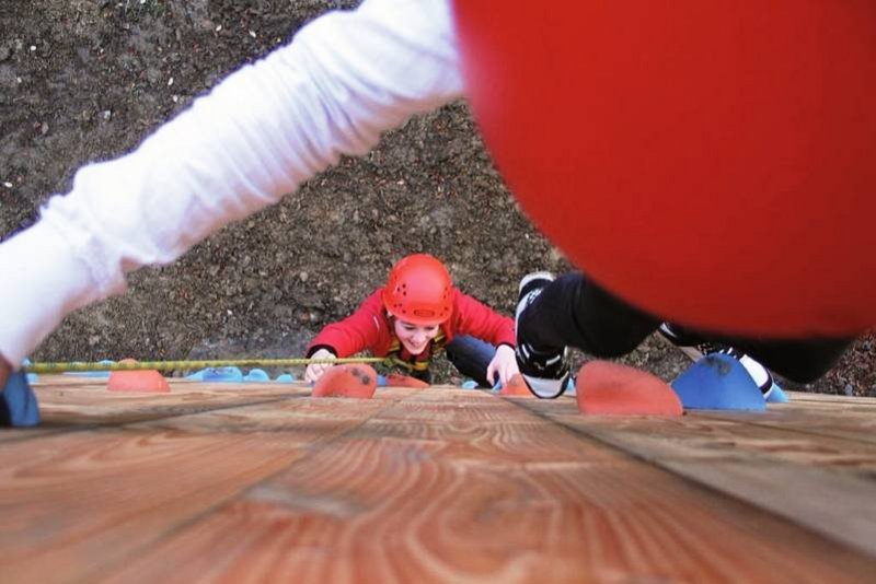 Von hier aus starten auch gleich zwei Seilbahnen, einmal über den Vorplatz und einmal XXL über unser gesamtes Bachtal! Und wer meistert am Ende noch den stockfinsteren Kriechschacht am Fuße der Wand?